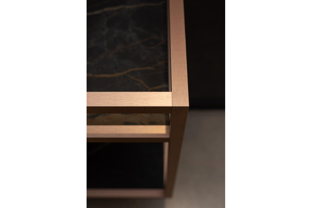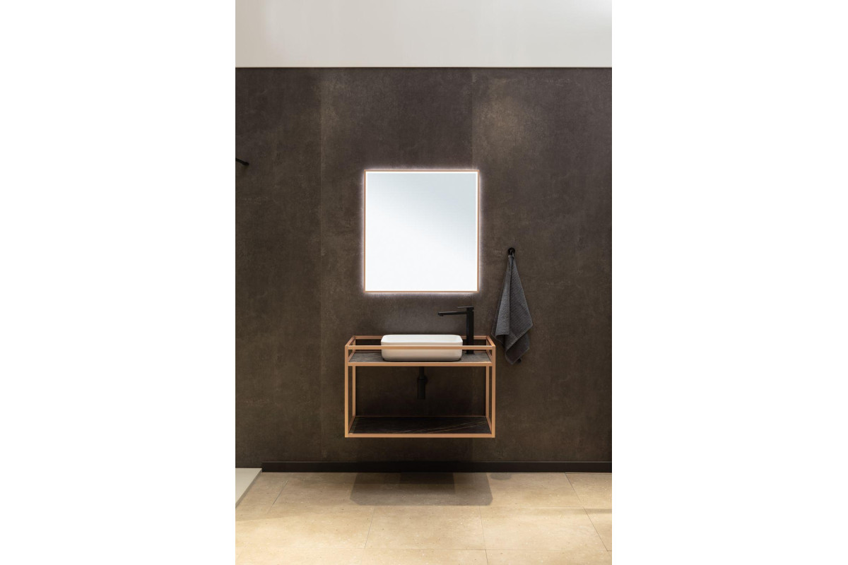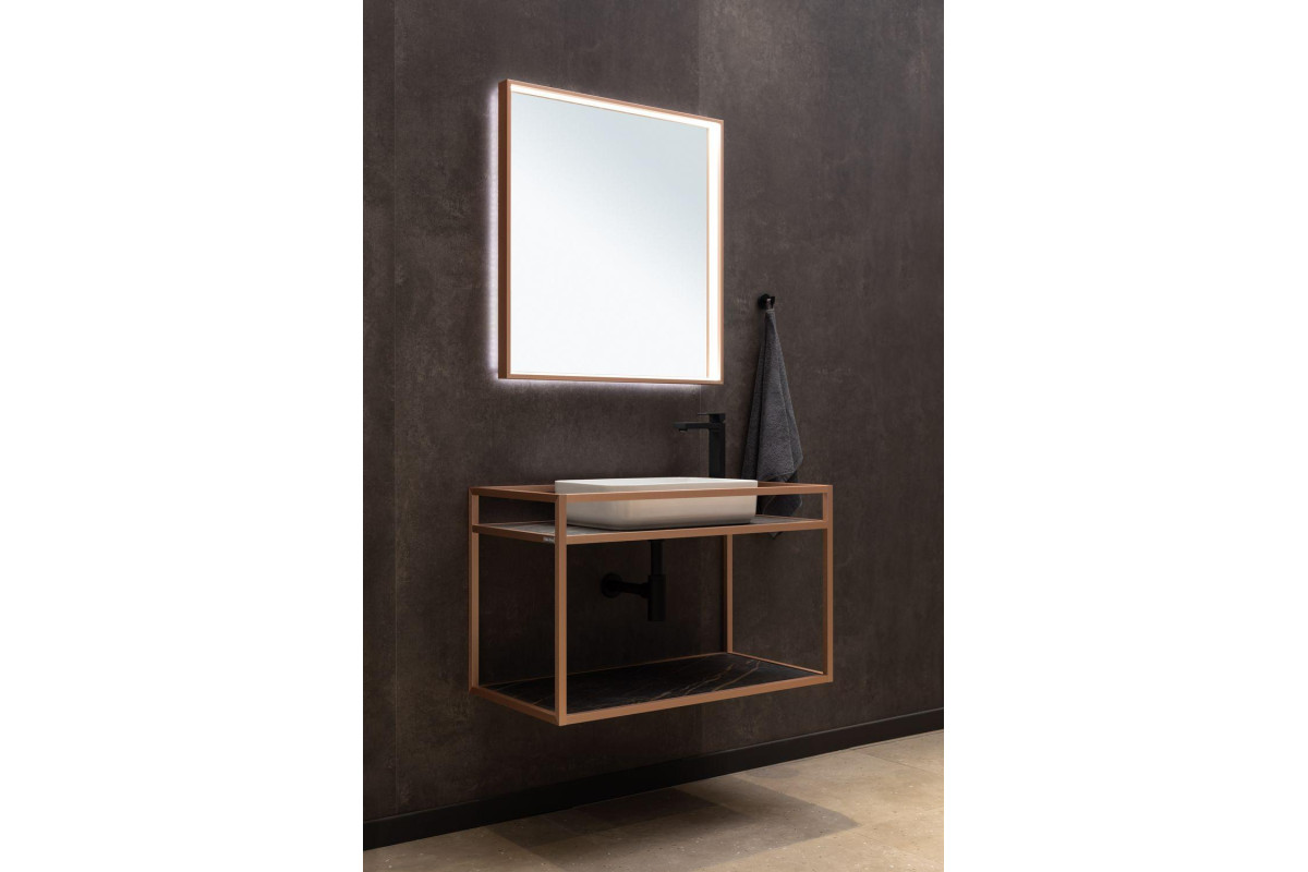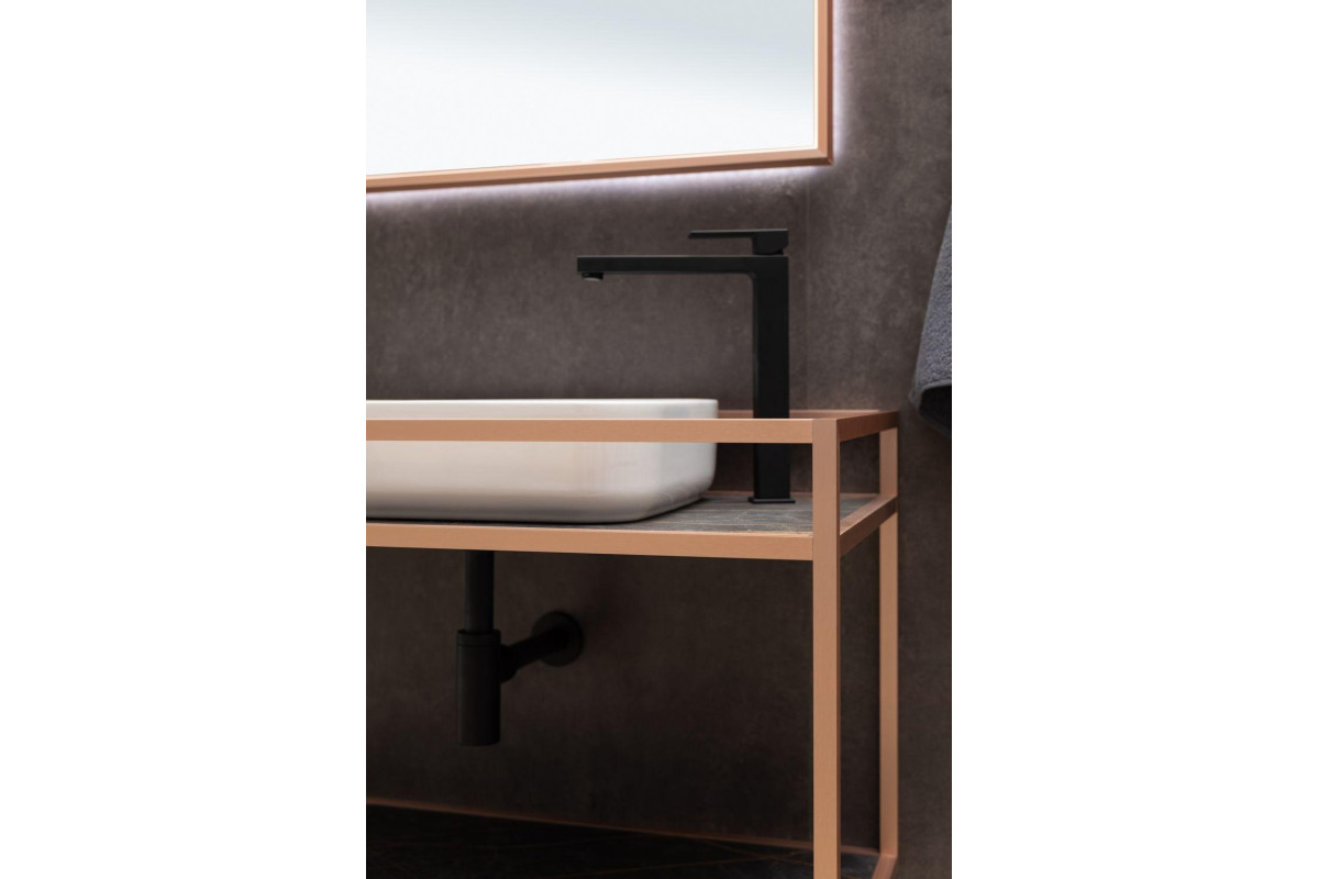 Стильные каркасы тумб и пеналов выполнены из металла, имеют брашированную поверхность