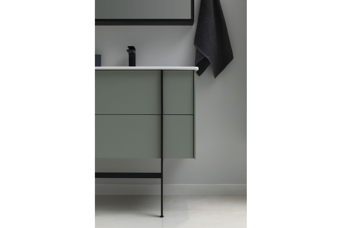 Изюминкой коллекции являются стильные и оригинальные металлические ручки, которые образуют единую линию с ножками тумбы и пенала. Ручки, опоры и зеркала коллекции REALITY выполнены из металла в цветах: черный браш или латунь браш.