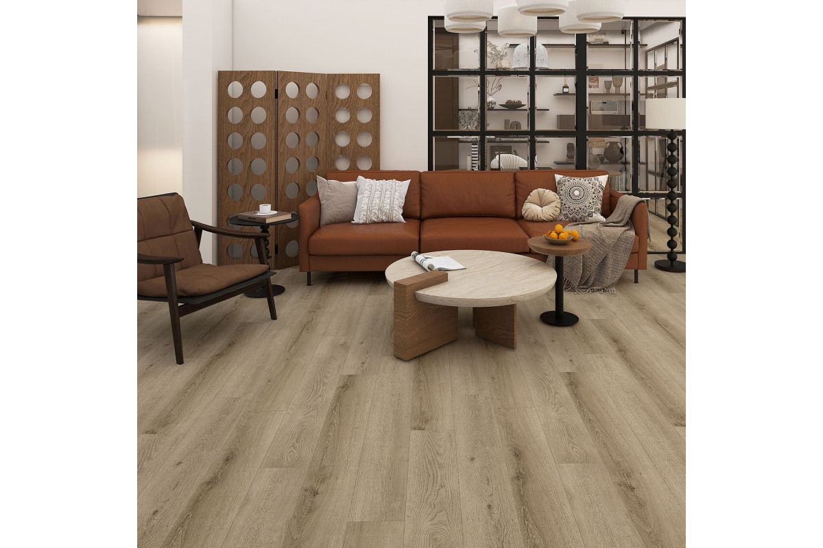 Коллекция Synchro Floorwood – виниловый пол для бесклеевой укладки на основе твердой плиты SPC: экологичный и высокотехнологичный первичный винил с минеральным наполнителем. Композит SPC водостойкий, термостабильный. Защитный слой 0,5 мм из прозрачного ПВХ обеспечивает 43 класс эксплуатации, повышает износостойкость покрытия и делает уход простым. Материал подходит для теплого пола, не скользкий, износостойкий, стойкий к химикатам и колесикам кресел, противопожарный (классКМ2). По периметру плитки V-образная микрофаска.