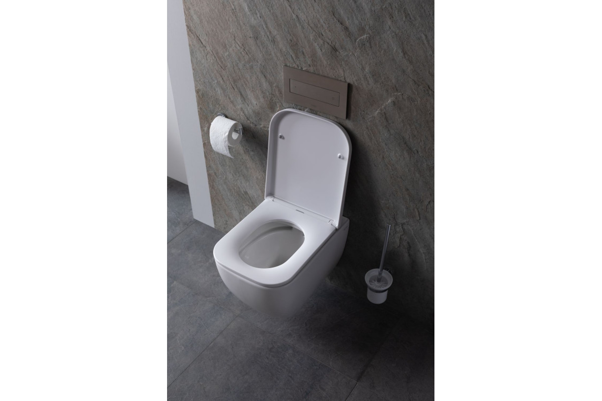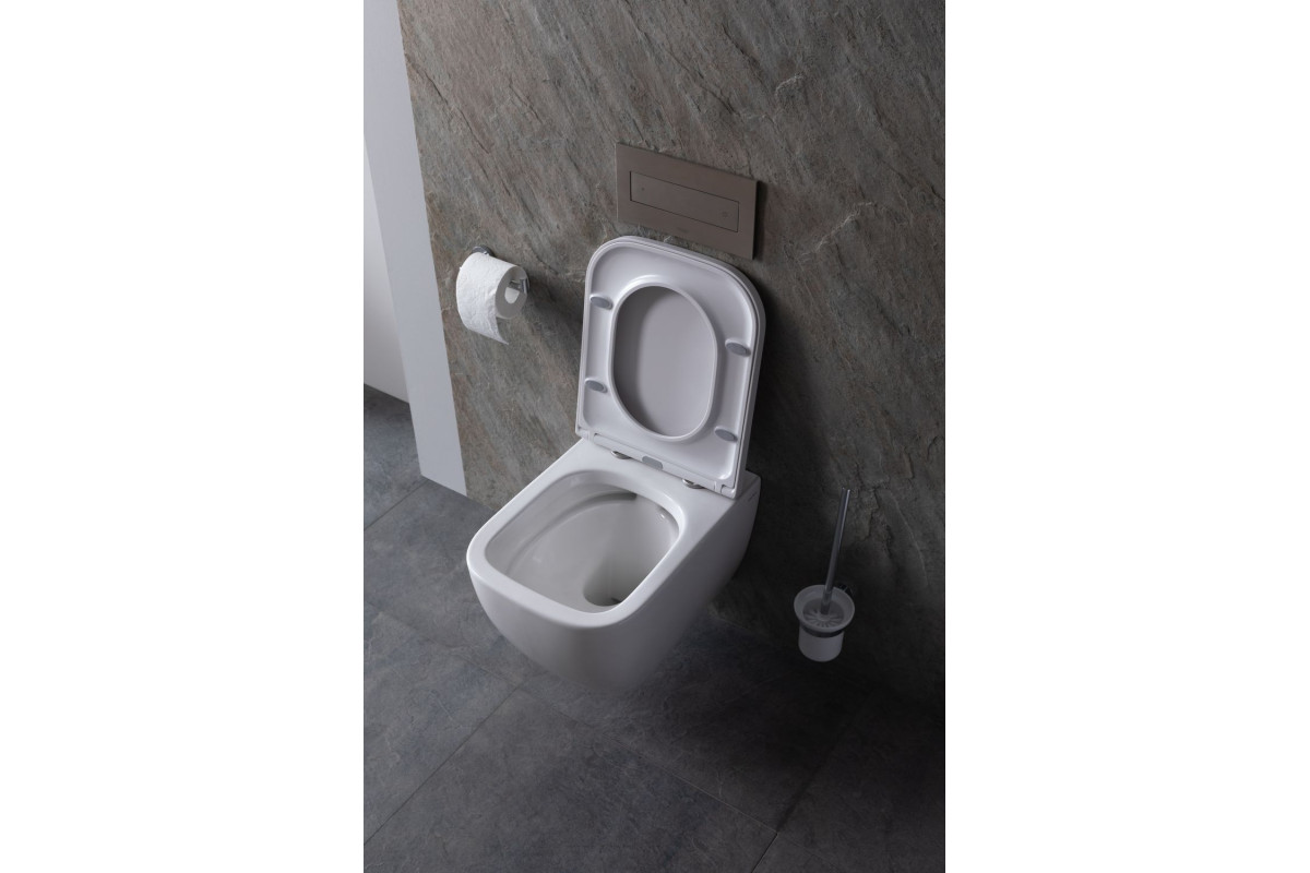 Прямоугольный подвесной унитаз с мягкими углами Allen Brau Infinity белого цвета в стиле модерн — находка для любителей строгих форм и исполнений. В комплекте с унитазом идет крышка-сиденье из дюропласта в цвет керамики самого устройства. Поверхность изделия глянцевая, а механизм смыва определяется системой инсталляции, встроенной в стену. Решение выглядит технологично и минималистично. Унитаз безободковый, с покрытием антигрязь и горизонтальным направлением выпуска. Подойдет модель для любых интерьерных решений, даже для классики, если дизайнер разработает подходящую концепцию для воплощения. Благодаря компактным размерам 360х510х350 мм будет органично смотреться как на большом пространстве, так и на малой площади санузла.